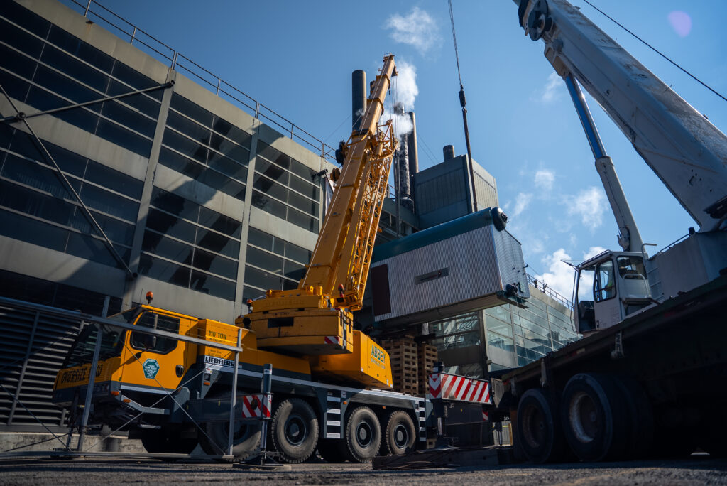 This crane has an on-board computer. It also features a computer system that is downloaded on an office computer that coincides with the crane. This helps us to estimate lifts before we do the job, giving us the advantage to be prepared for a safe lift.