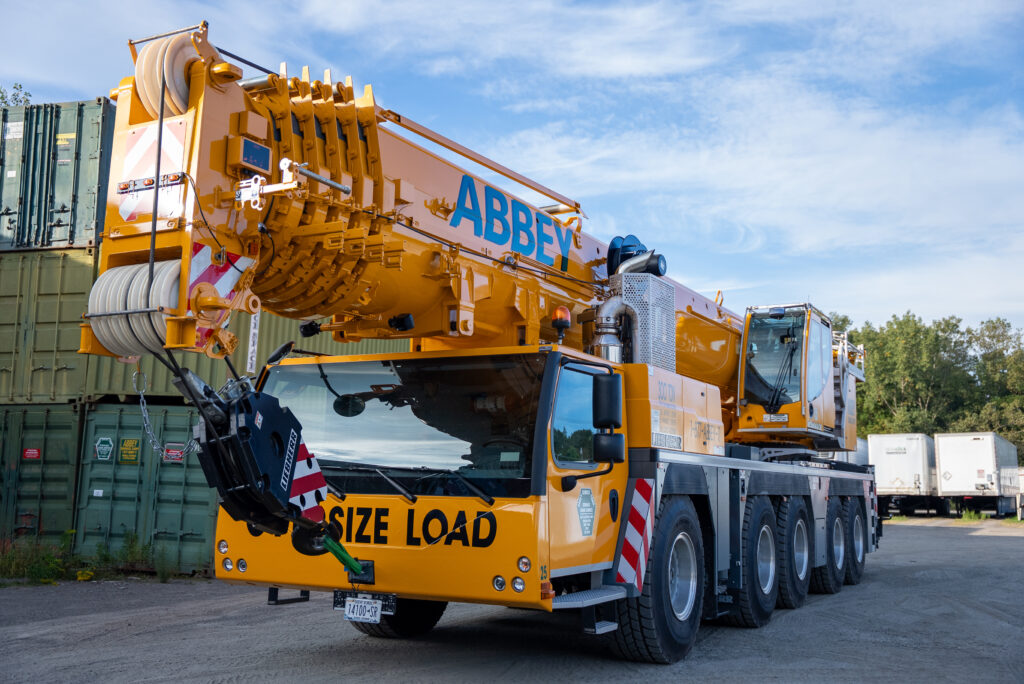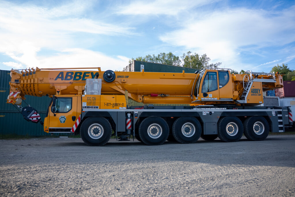 This is an all-terrain crane, and the pride of our fleet here. Having unique features that make this crane suitable for jobsites on a variety of terrain.